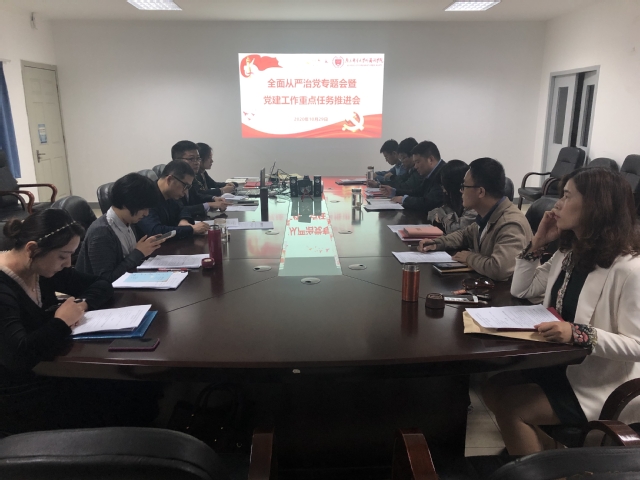 10月29日下午,外国语学院党委召开全面从严治党专题会暨党建工作重点任务推进会。院党委书记陈晓波主持会议,副书记袁周敏、徐欣娅,院党委委员及院领导班子成员、党支部书记、党风联络员参加会议。